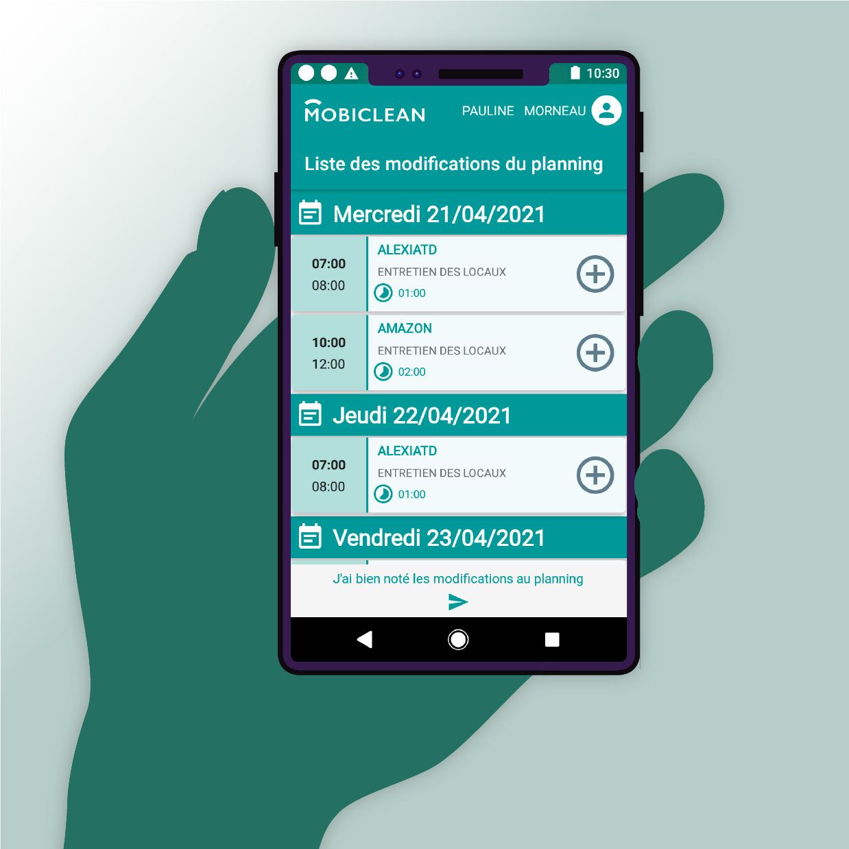 Avec Mobiclean, j’ai mon planning et toutes mes informations utiles dans la poche.